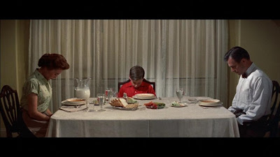 Brilhante Ray, no uso inspirado do Scope´, na composição de planos com tanto de belo como de expressionista (a famosa e ameaçadora sombra "bigger than life" de Mason), num uso de côr deslumbrante e na encenação de cenas aparentemente mundanas, mas que transmitem uma tensão em surdina quase insuportável de tão sufocante. Nunca um copo de leite foi tão perturbante, nem mesmo em Notorious. Ou então que dizer das cenas finais em que no cumulo da sua loucura, Mason, emulando a história de Abraão pega num par de tesouras e numa bíblia, disposto a chacinar o seu filho. A sua mulher ao confrontá-lo dizendo-lhe que de acordo com a bíblia, Deus salvou o filho de Abrão, a resposta é aterradora: "god was wrong". Isto sim é terror. Um terror sublime, que funciona a vários níveis e onde estranhamente simpatizamos com a revolta do protagonista. Ou será antagonista ?